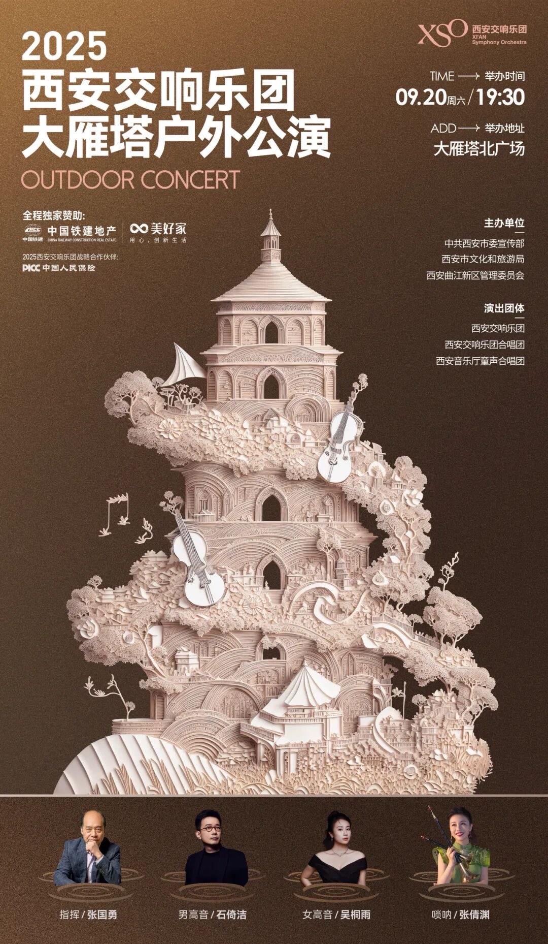 三秦都市报-秦闻讯(记者 王伟伟)记者16日从西安音乐厅获悉,2025西安交响乐团大雁塔户外公演将于9月20日(周六)晚19:30如约呈现,为古城市民和游客带来一场顶级的音乐盛宴。