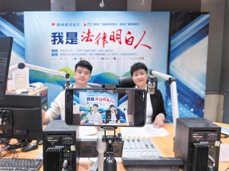 陈勤莉(右)正在参加法治专栏《我是法律明白人》节目录制(资料照片)。 受访者供图