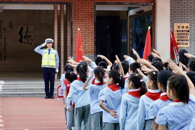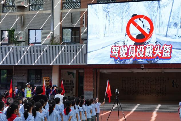 课堂尾声,民警向同学们发起“安全双守护”倡议:“不仅自己要把交通法规记心间,还要当好‘小小监督员’!乘坐电动自行车时先把自己的头盔戴规范、扣紧实,再主动提醒爸妈‘头盔戴好了咱们再走’,用这两件小事,和家人一起把安全牢牢‘握’在手里!”