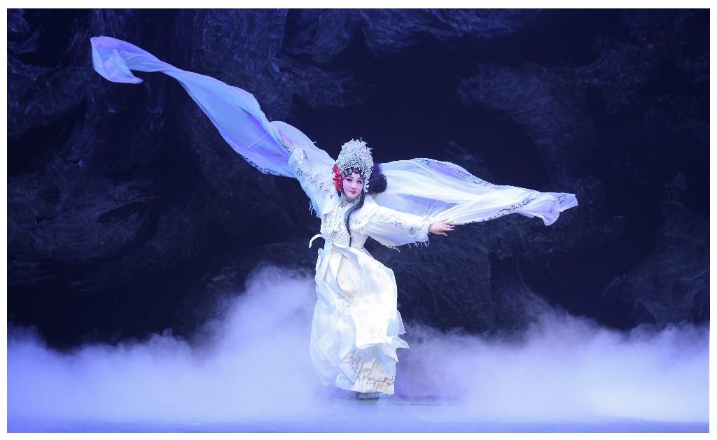 演出现场,热烈的氛围早已超越台上台下的界限,掌声从头至尾不断响起。当裴瑞卿与李慧娘、卢昭容的传奇爱情,在贾似道的强权阻挠与判官、孟婆等“幽冥帮手”的温情助力下层层铺展,观众无不被剧情的跌宕与情感的炽热打动。李梅的表演更成全场焦点,水袖翻飞间藏着细腻情愫,手帕、凳子的运用见功底,吹火、斗篷等经典戏曲技巧的呈现则惊艳四座;最令人叹服的是,她竟能在剧中同时融入京剧、河北梆子、黄梅戏、豫剧四个剧种的声腔,以多变唱腔勾勒卢昭容装疯时的复杂境遇,每一段演绎都尽显深厚艺术功底。