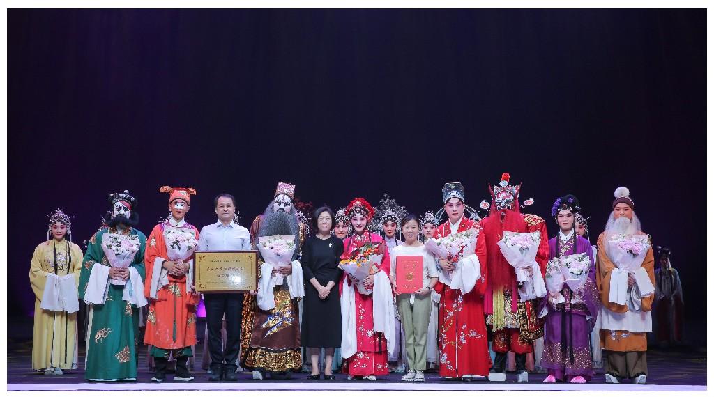 演出结束后,现场举行简洁而庄重的颁奖仪式——中国戏剧家协会分党组成员、副秘书长王春梅亲临舞台,为陕西省戏曲研究院颁发第十九届中国戏剧节“优秀剧目”奖牌与证书,对《再续红梅缘》的演出成功表示热烈祝贺,这份荣誉为整场演出画上圆满句点。