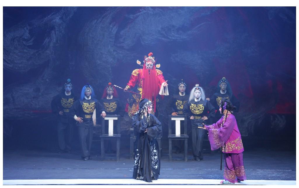 本届戏剧节演出中,《再续红梅缘》的演员阵容与角色塑造堪称“教科书级”。主演李梅一人分饰两角,演绎李慧娘时,以悲愤高亢的唱腔、刚劲利落的身段,将这位含冤而死、为情抗争的烈女子形象刻画得入木三分;诠释卢昭容时,则切换为灵动婉转的声线、娇俏鲜活的神态,尽显少女的天真烂漫与聪慧机敏,两个行当迥异、性格反差强烈的角色在她的演绎下无缝衔接,尽显表演功底;王航饰演的书生裴瑞卿,以清亮温润的嗓音与儒雅俊朗的扮相,完美呈现出角色的痴情坚守与文人风骨;李江伟饰演的反派贾似道,借阴鸷的眼神与夸张的肢体细节传递人物的专横跋扈,让“强权霸凌真情”的形象立体鲜活;黎鹏扮演的判官更打破传统阴森刻板的印象,被李慧娘的真情打动后尽显人情温度,连孟婆、黑白无常、牛头马面及小鬼也一同褪去幽冥角色的肃穆感,分别化身媒婆、傧相、花轿夫等,全程为良缘助力,为剧情增添了满满的温情与趣味。