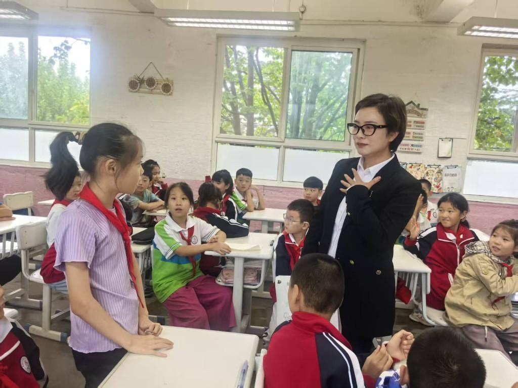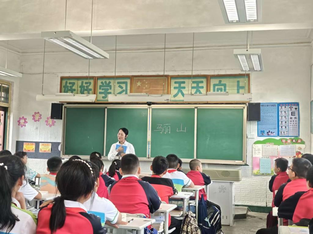 在下和小学四年级教室,魏娜结合学校毗邻秦陵博物院的地理特点,以学生熟悉的秦文化为切入点,围绕秦人奋斗史、秦始皇统一六国的历史进程、秦朝的制度创新及其对中华文明的深远影响等方面展开。在六年级教室,临潼区骊山风景区旅游服务中心导游马妩围绕“骊山历史文化发展变迁”主题,精心准备了丰富的历史图像与文字资料,系统阐述骊山的历史变迁与文化价值。她通过图文并茂的形式,将知识传递与情感共鸣融为一体。
