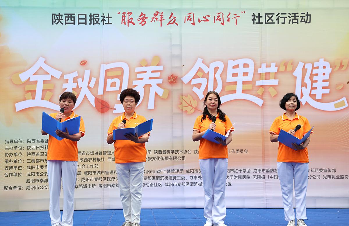 三秦都市报-三秦网讯(记者 葛兰 代泽均)9月17日,陕西日报社“服务群众 同心同行”社区行系列活动之“金秋同养 邻里共‘健’”主题活动,在咸阳市秦都区渭滨街道柳仓广场热闹举行。此次活动由陕西省委社会工作部指导,陕西日报社主办,众多单位共同协办、承办与支持,吸引了咸阳市渭滨街道劳动路社区、中华西路社区等众多居民参与,旨在营造和谐邻里氛围,提升居民健康素养,促进社区和谐发展。