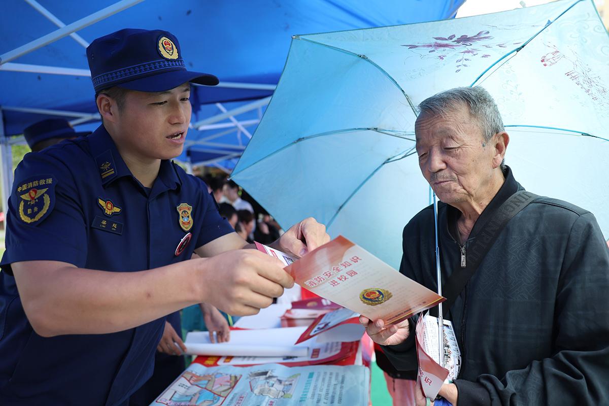 在消防演练区域,居民们认真观看了咸阳市消防救援支队的消防员带来的宣传彩页,其中包含家庭防火、校园防火等实用内容。消防员带来的灭火战斗服,更是吸引来不少观众围观。“这个帽子可真重,戴着这个帽子也不方便回头。”听到市民这样说,消防员赶紧上去解释说,这个帽子在灭火时能起到大作用。互动问答中,市民增强了消防安全意识和应急处置能力。
