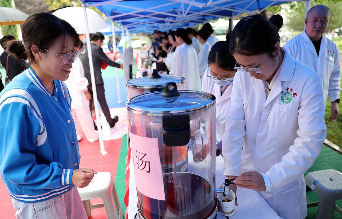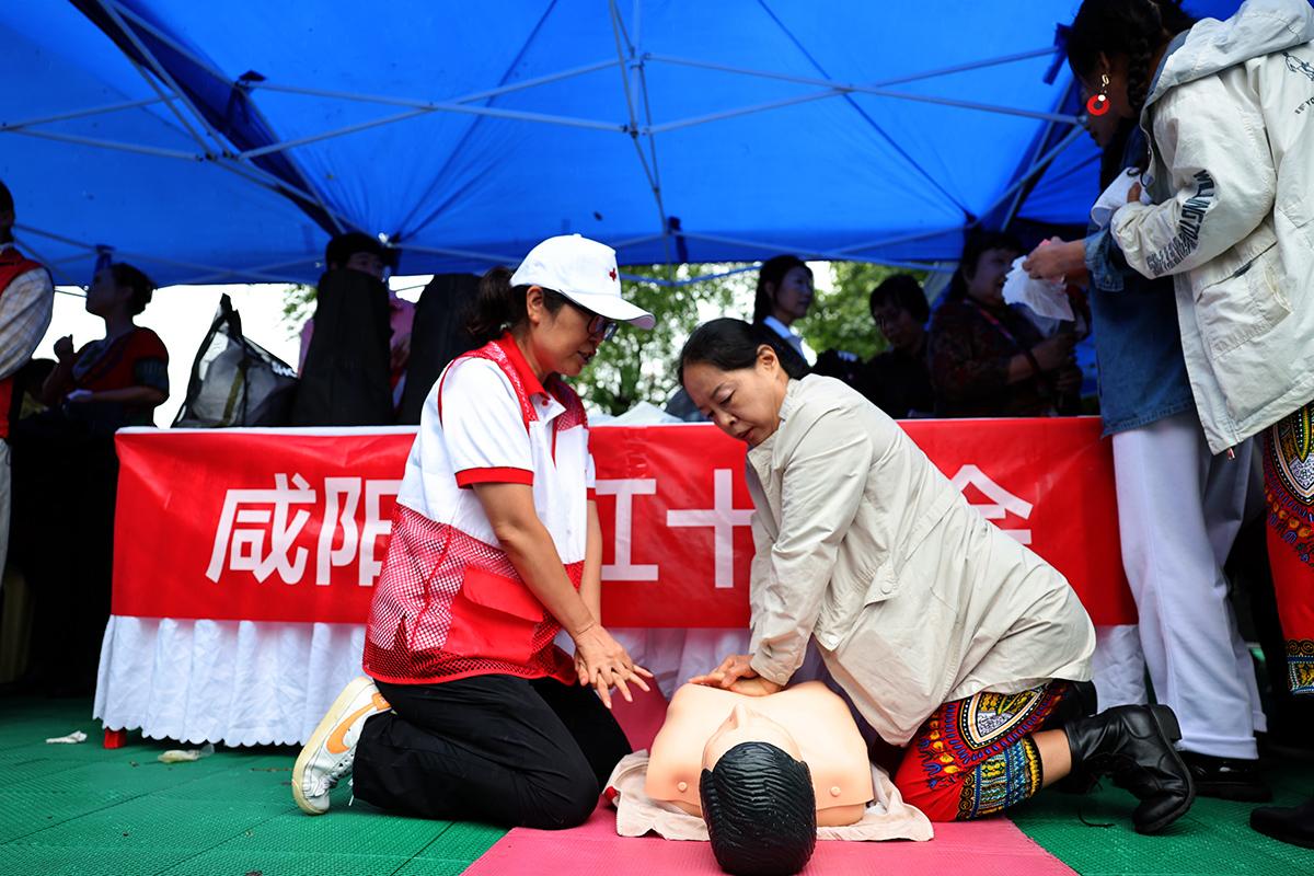 咸阳市红十字会则专注于急救知识宣传,通过现场演示,向居民传授心肺复苏、海姆立克急救法等实用急救技能。陕西中医药大学第二附属医院(西咸新区中心医院,咸阳市妇产医院)带来了5款该院药剂科与西安交通大学研发的“院内制剂”、中药茶饮、药膳月饼、中药膏方等。