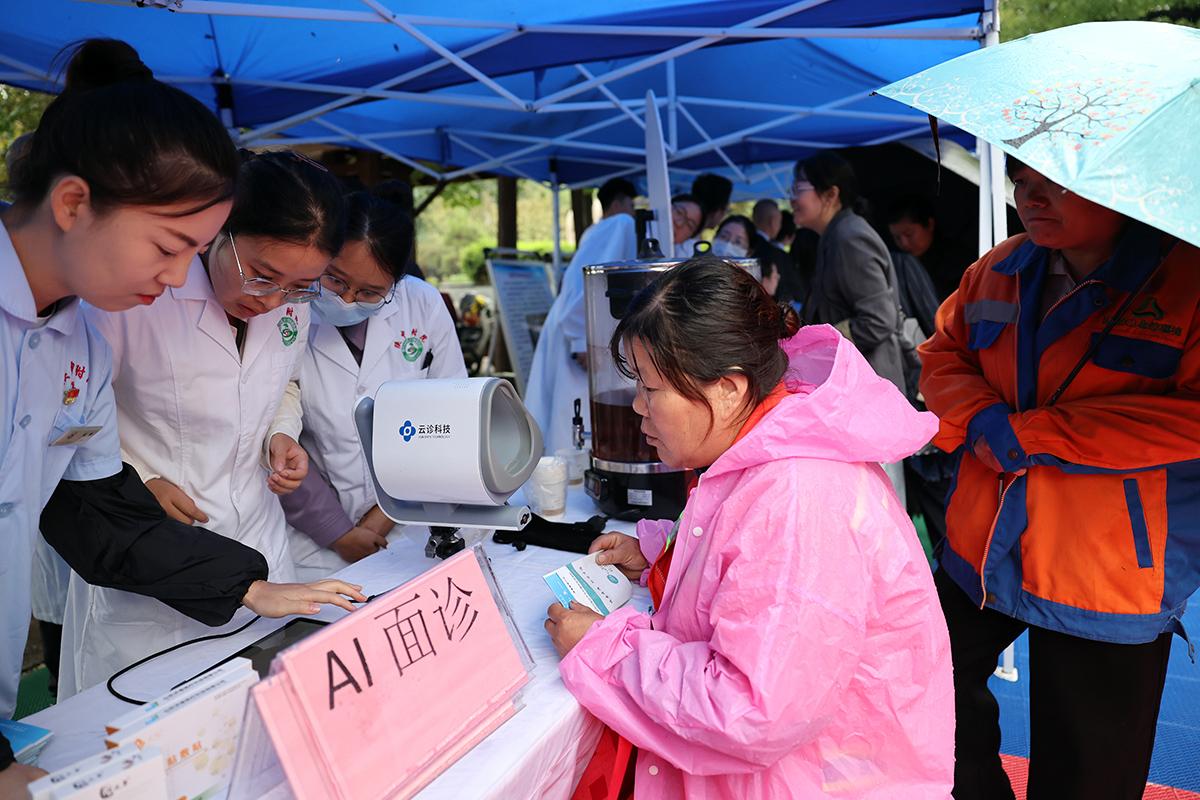 陕西中医药大学附属医院的服务点人气颇高,这里不仅有减脂汤、八宝汤等养生饮品供居民品尝,还提供AI面诊、针灸、中医推拿等服务。“颈部按摩10分钟,不仅身体舒服了很多,眼睛也清亮了不少。”市民王女士呼唤来小区居民排队感受。同时,数字化口腔医学中心的幸运大抽奖活动也吸引了很多居民参与,奖品涵盖口腔曲面断层片拍摄、全口牙病系统检查与治疗设计等项目。