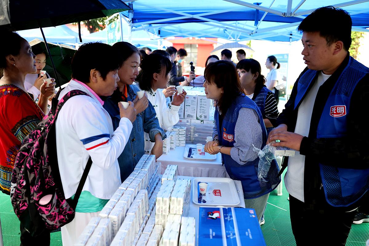 此外,光明乳业设置了产品品鉴会,居民们可以免费品尝高钙有机纯牛奶、大白兔风味牛奶等产品,还能通过参与“投壶”小游戏领取定制礼品。“大白兔风味牛奶,又甜又丝滑的口感,让人一下想起了小时候的牛奶味。”何先生说,自己记下了这款产品,以后也给孩子尝尝。