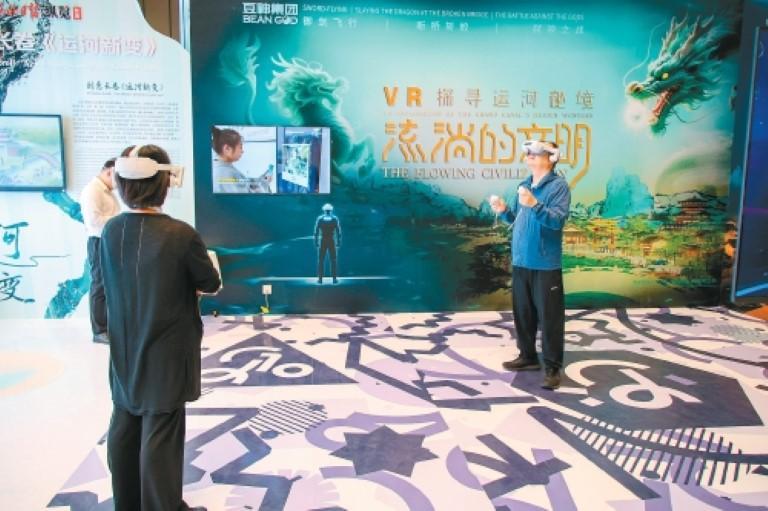 与会嘉宾体验大运河VR项目《流淌的文明》 记者 张曦 摄