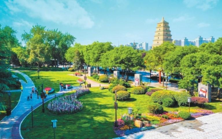 大雁塔巍然屹立于现代都市的繁华之中,见证了西安的沧桑变迁。 记者 李明 摄