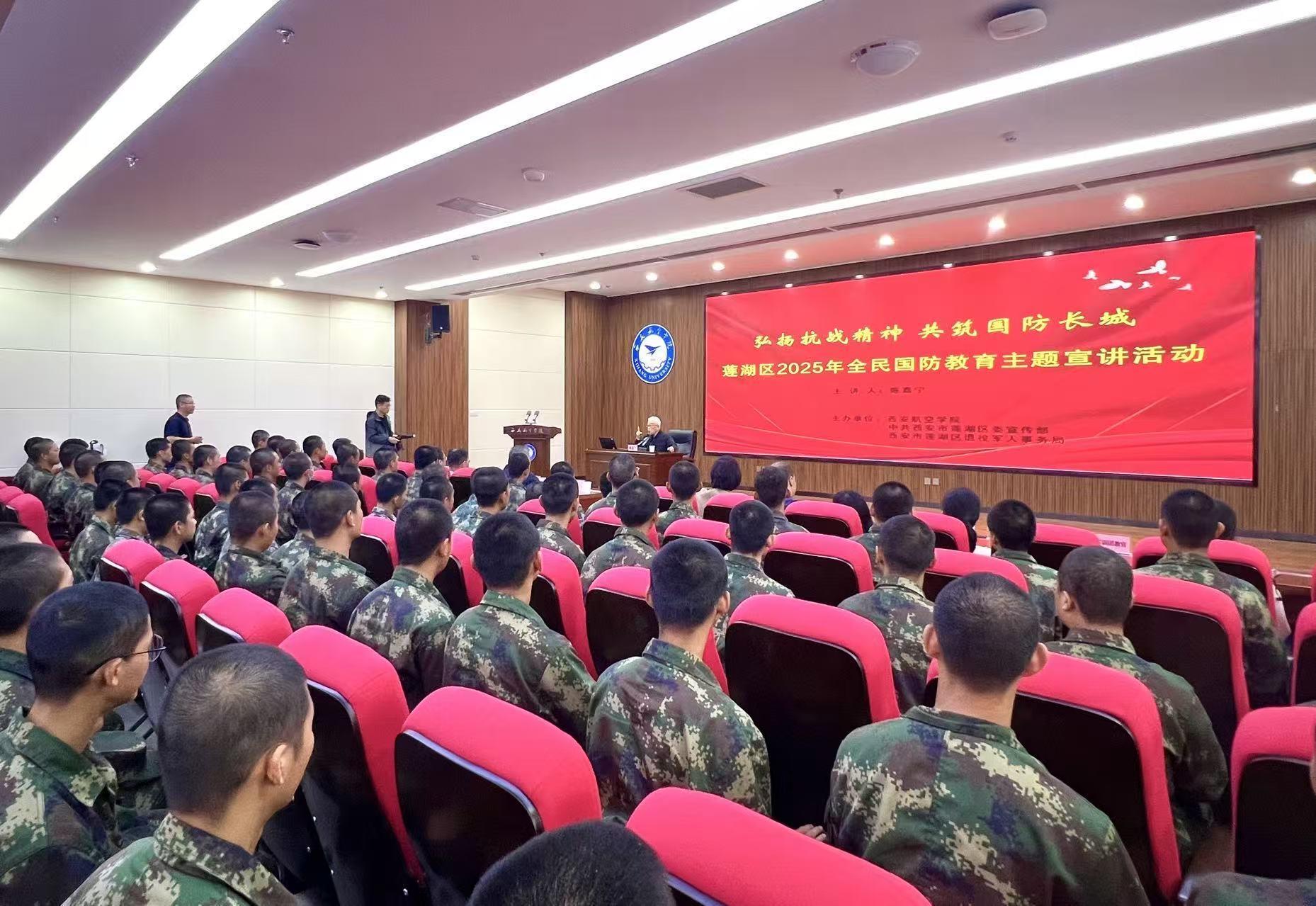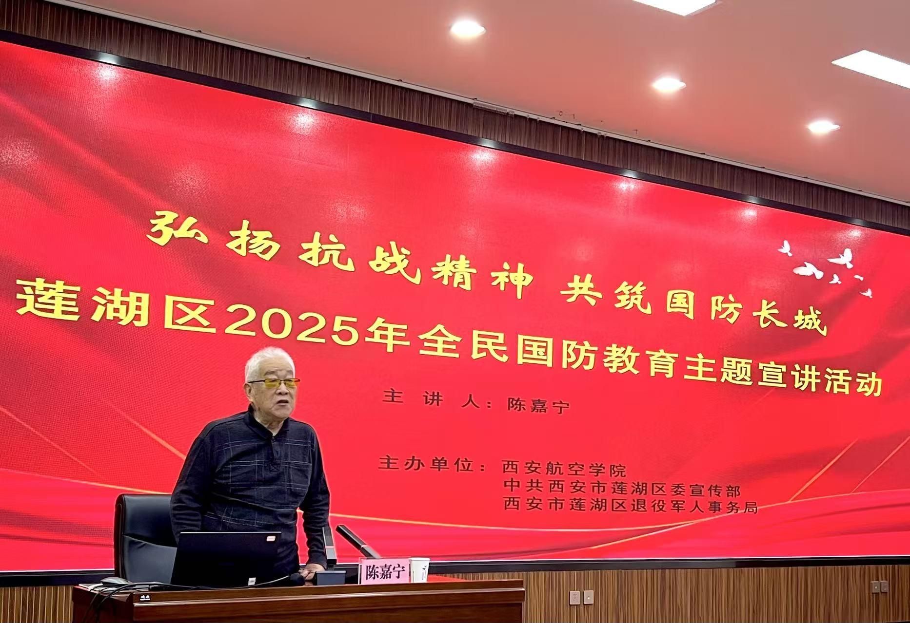 三秦都市报-秦闻讯(记者 艾莉)9月18日上午,莲湖区2025年全民国防教育月主题宣讲活动走进西安航空学院莲湖校区。老战士陈嘉宁结合自己参战经历,为现场300余名师生上了一堂生动的国防教育课。