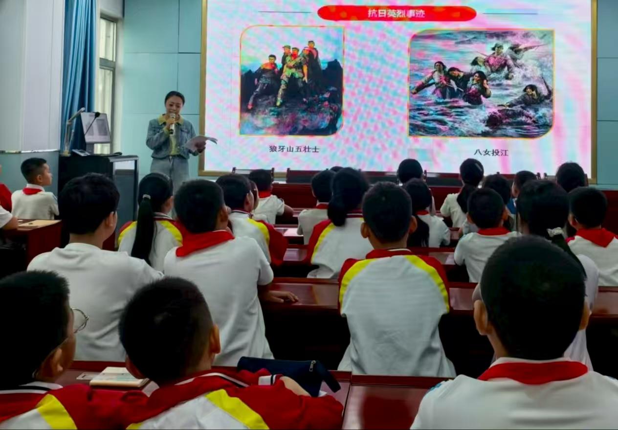 “看着PPT里日军侵华的画面,我攥紧了拳头;再看到阅兵式上咱们国家的先进武器,又特别骄傲,以后一定要好好学习,让祖国更强大。”五年级学生段文媛说。