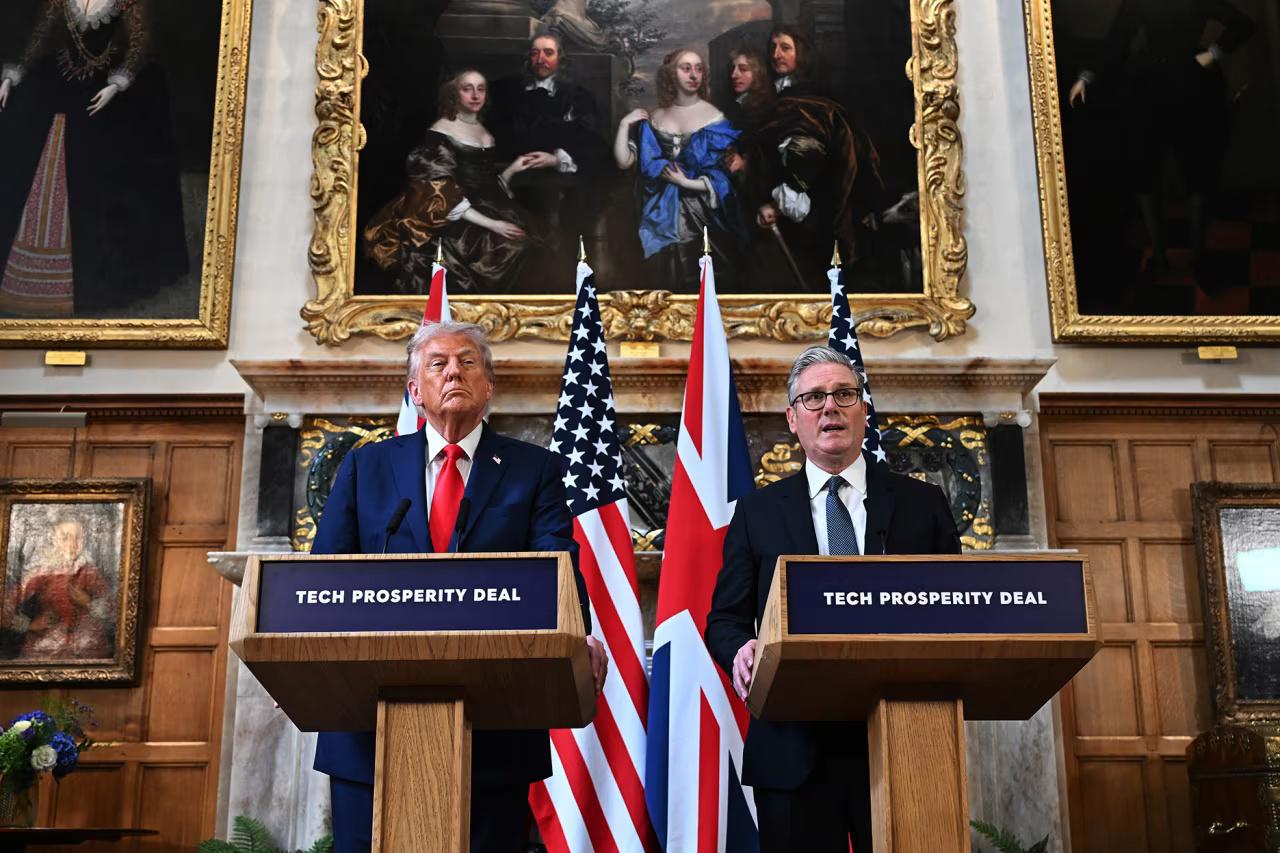 当地时间18日,美国总统特朗普与英国首相斯塔默举行联合新闻发布会