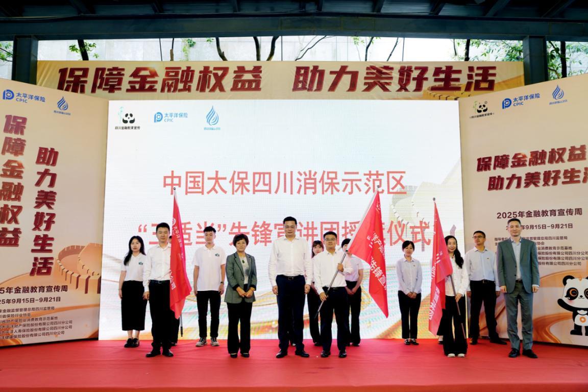 为深入推进“三适当”原则在四川的普及与实践,中国太保产险、中国太保寿险、太平洋健康险在川机构积极发挥党员带头和示范作用,成立“三适当”先锋宣讲团,通过深入基层、贴近群众的宣讲活动,将专业、复杂的金融知识转化为通俗易懂的语言,引导消费者理性选择、合理投资。活动中,由中国太保产险总经理助理苏金华、中国太保寿险总经理助理朱雪松等共同为“三适当”先锋宣讲团代表授旗。中国太保寿险四川分公司负责人作为先锋宣讲团代表开展了首场宣讲,传递“三适当”核心理念,将“风险提示送上门”。