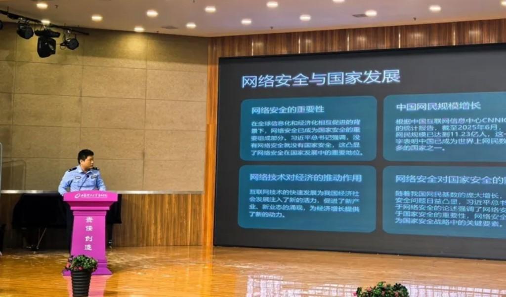三秦都市报-秦闻讯(郭伟)2025年国家网络安全宣传周正式启动,今年网络安全宣传周主题为“网络安全为人民,网络安全靠人民——以高水平安全守护高质量发展”。近日,咸阳市泾阳县公安局网安大队走进西安理工大高科学院,向广大师生宣传网络安全知识、法律法规。