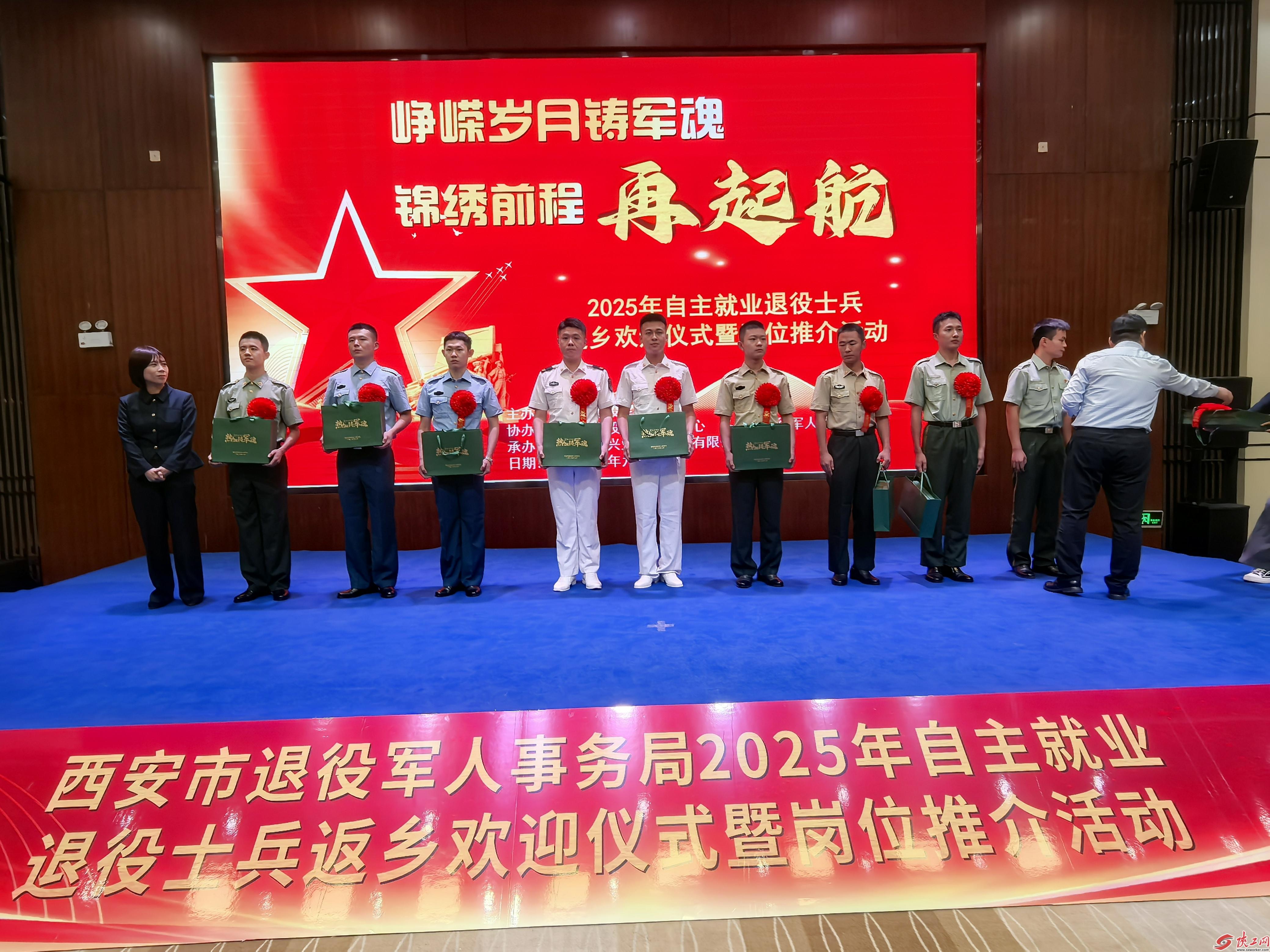三秦都市报-三秦网讯(第五建平 记者 马昭 )9月19日,西安市退役军人事务局举行2025年自主就业退役士兵返乡欢迎仪式暨岗位推介活动。该市2025年返乡自主就业退役士兵代表,西北工业大学继续教育学院、西安航空职业技术学院等院校及承训机构代表,正大集团、京东物流、中铁水务集团等多家用人单位,以及全市退役军人事务系统工作人员共130余人参加活动。