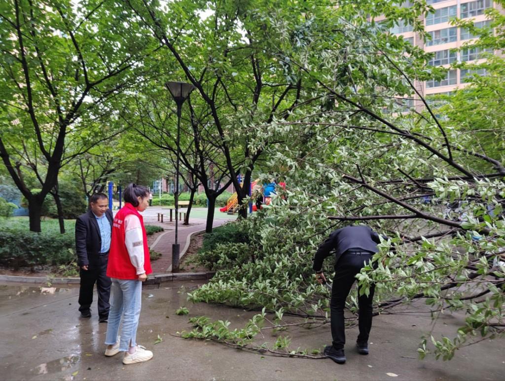 三秦都市报-秦闻讯(记者 姬娜)9月18日下午,受降雨天气影响,西安市雁塔区电子城街道裕昌太阳城社区内一棵大树突然倒伏,严重阻碍居民出行,存在安全隐患。接到居民反馈后,社区与物业立即启动应急响应机制,迅速组织力量开展抢险处置。