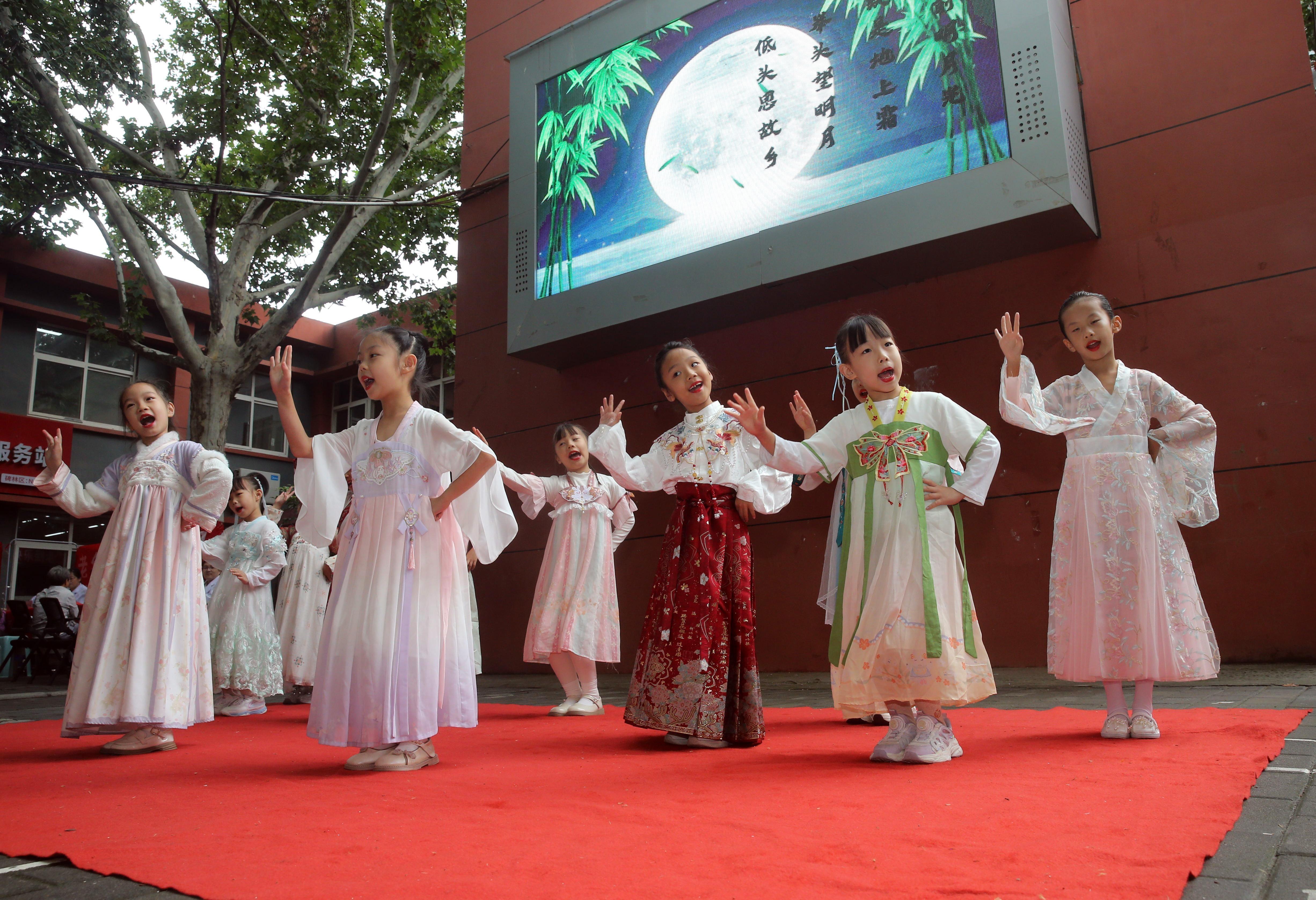 活动在古典扇舞《千古一醉》中拉开帷幕,南门小学学生们带来的诗朗诵《唐诗联唱》,以情感真挚的演绎,展现了唐诗的永恒魅力。飞花令互动环节围绕“长安”“秋”“月”等主题词展开,居民们踊跃参与,吟诗接句,现场气氛热烈,大家在游戏中传承文化、增进交流。