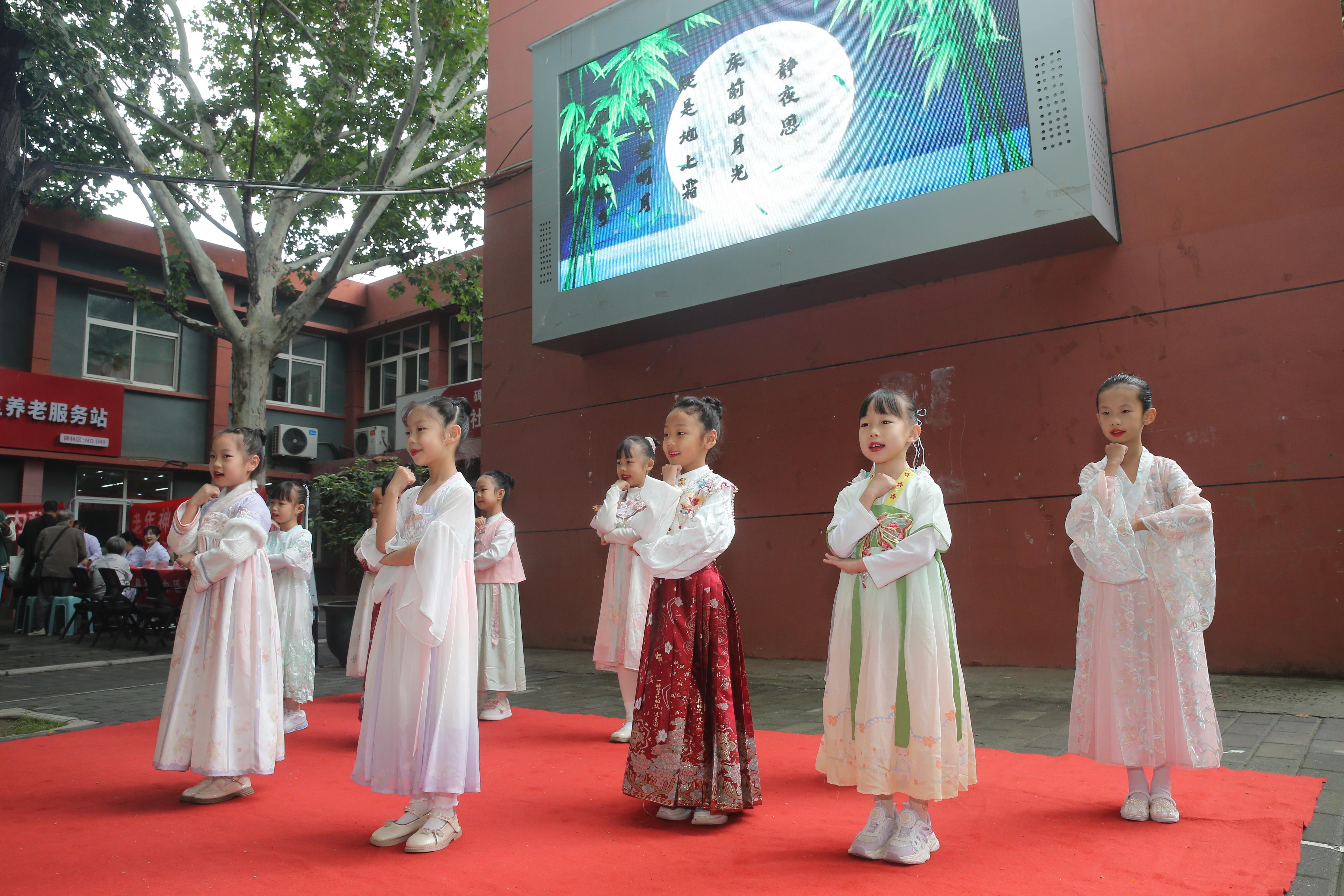 活动在古典扇舞《千古一醉》中拉开帷幕,南门小学学生们带来的诗朗诵《唐诗联唱》,以童声琅琅、情感真挚的演绎,展现了唐诗的永恒魅力。飞花令互动环节围绕“长安”“秋”“月”等主题词展开,居民踊跃参与,吟诗接句,现场气氛热烈,在游戏中传承文化、增进交流。