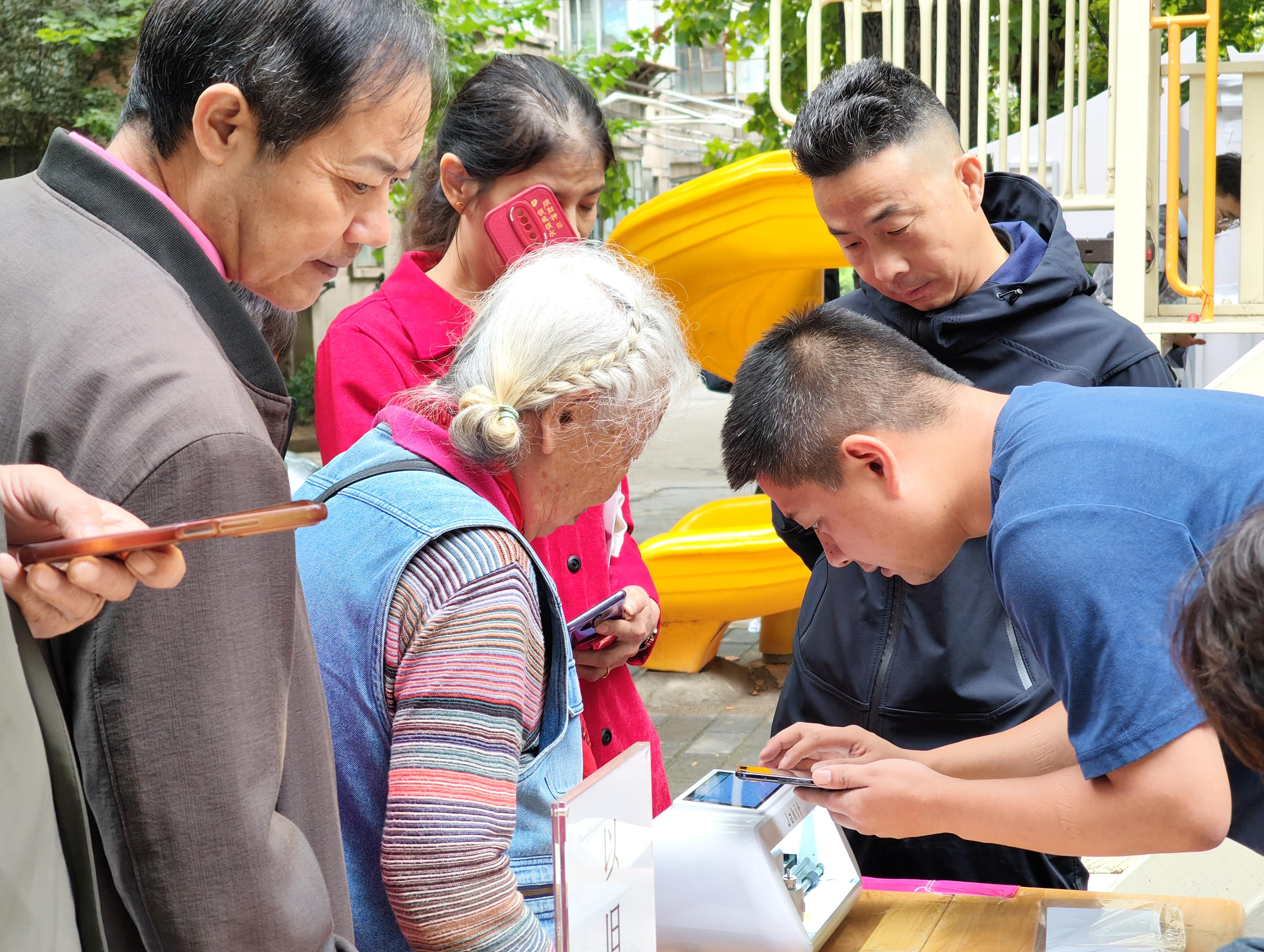 “剪头发、磨刀,不出小区就能轻松搞定,真是太方便了!”“平时想约都约不上的专家,今天直接来社区坐诊,实在太好了!”紧接着9月19日上午,由长安路街道新时代文明实践所联合西勘社区新时代文明实践站、碑林区南门小学、西安银行城南支行、西安市卫生学校等辖区文明单位共同承办的“唐韵新风沐邻里 共绘文明实践圈”主题实践活动圆满举行。活动现场,西安市卫生学校宣讲员以《以专业为桥 筑文明之城》为主题做文明宣讲,生动分享了他们的志愿服务故事。活动还特别设置了“一刻钟文明实践圈”便民服务集市,提供健康义诊、义剪、免费贴膜、便民磨刀、养老家政咨询以及传统手工艺展示等多样服务。
