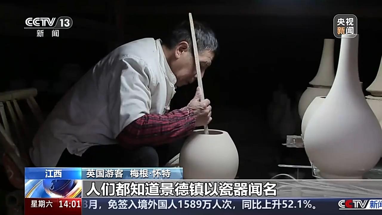 英国游客 梅根·怀特:这里拥有深厚的陶土和陶瓷历史,尤其是瓷器。在全世界范围内,人们都知道景德镇以瓷器闻名。因此,我来到这里,希望在自己的创作中探索这些理念并进行研究。