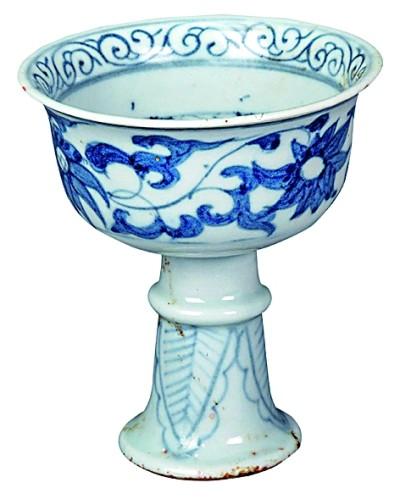 馆藏元代青花竹节人物纹高足杯。图片由武威市博物馆提供
