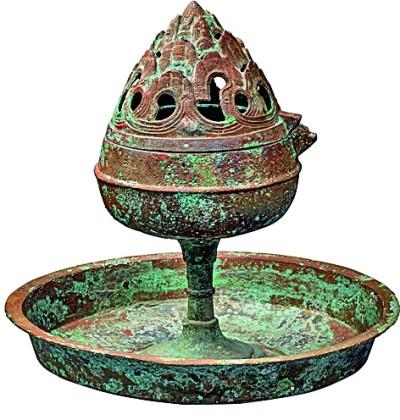 馆藏汉代带盘博山炉。图片由武威市博物馆提供