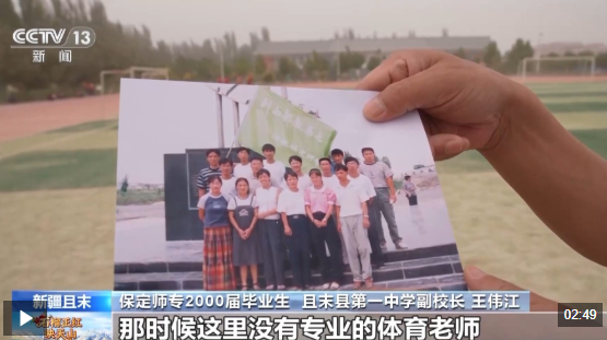 保定师专2000届毕业生、且末县第一中学副校长 王伟江:这是2000年我们刚到且末时拍的照片,那时候这里没有专业的体育老师,我们到了之后开始给学生上正规的足球课。