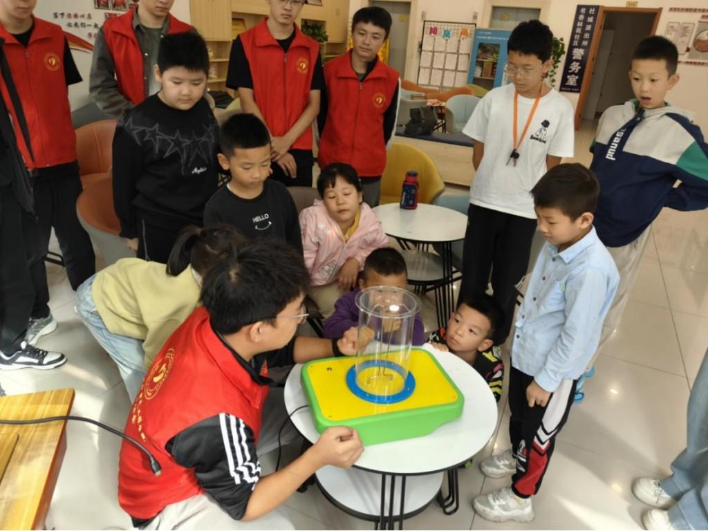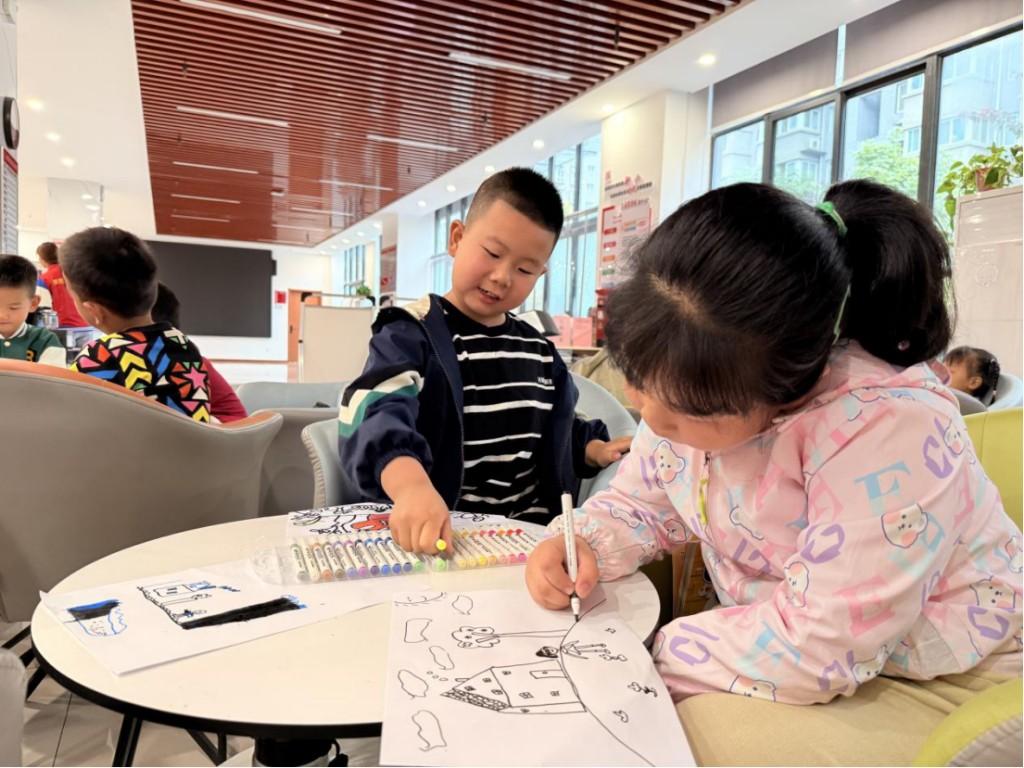 活动首日,“画出我的心爱之物”环节率先开启。孩子们在轻松愉快的氛围中,用水彩笔、油画棒等工具,描绘自己心爱的玩具、小动物和想象中的奇妙世界,展现出丰富的想象力和创造力。随后,西安理工大学电气工程学院的学生志愿者带来生动有趣的“电力小课堂”,通过简易实验和现场演示,讲解电的来源与安全用电常识,激发孩子们对科学的兴趣。