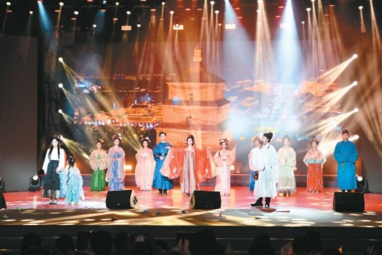 活动中,全国道德模范丁水彬、西安市新文艺青年协会代表冯佳晨、西安电子科技大学学生周梦翔等共同演绎节目《西安礼遇》。不同领域的“西安代言人”齐聚舞台,带领观众穿越时空,领略大唐盛世风采。汉服爱好者身着锦绣冠裳,吟诵诗句,展现了西安青年在传承中华文明、深化文旅融合方面的主动担当。