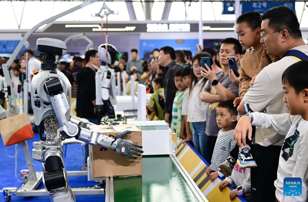 The ongoing 2025 World Manufacturing Convention showcases intelligent robotics, offering visitors a glimpse into how robots are stepping out of science fiction into reality. (Xinhua/Huang Bohan)