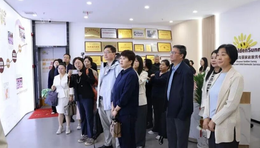 在陕西金贝儿母婴家政服务有限公司,代表团一行详细了解到该公司的发展历程、价值观、管理模式后,给予了充分肯定。