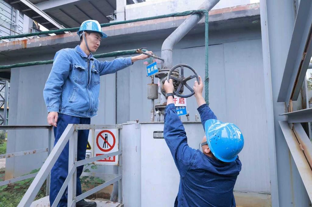 图为陕钢集团汉钢公司公辅中心气体作业区煤气巡检工正在对煤气排水器运行情况进行检查。