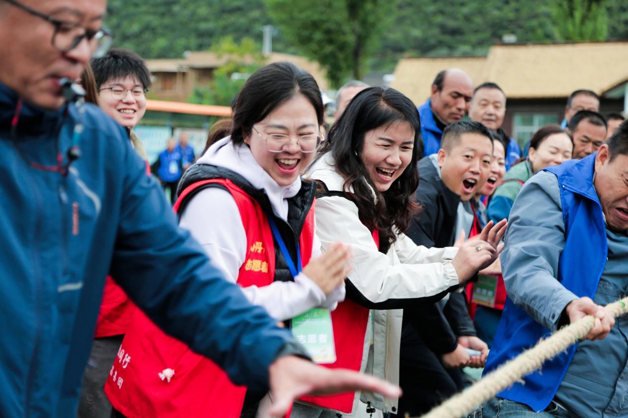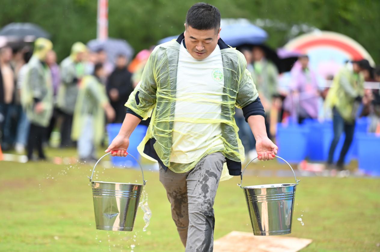 细雨纷飞中,将军村全民健身广场的草坪上人声鼎沸。开幕式上,威风锣鼓表演点燃全场激情,而随着裁判员一声哨响,“农人三项”团体赛正式开赛,选手们挑着装满玉米的扁担接力奔跑,手推车运送“山珍”时车轮在泥地上划出深痕,拔河赛场的呐喊声震彻云霄。在“巧手剥玉米”项目现场,28岁的刘志文和31岁的侯卫播全神贯注,手指翻飞间,金黄的玉米粒簌簌落下。“虽然赛前练了很多,但比赛时还是有些紧张,好在结果不错!”侯卫播赛后笑容灿烂。作为东道主,蓝田县前卫镇代表队派出10人参赛,据领队尉俊囡介绍,队员们为备战进行了为期一周的集训。