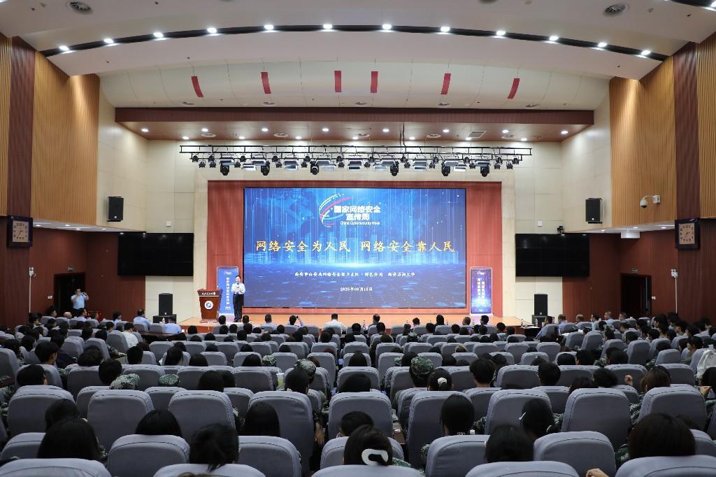 活动开始后,礼堂内大屏幕上率先亮起了分局精心制作的网络安全宣传片。视频聚焦校园高频风险场景,从“刷单返利陷阱”“冒充客服诈骗”,到“朋友圈晒照泄露信息”“陌生链接藏恶意程序”,用真实案例将抽象威胁具象化。“原来点错链接可能被盗号!”观看过程中,部分学生们便互相沟通起来。宣传片的警示效果直抵人心,进一步夯实师生安全认知。