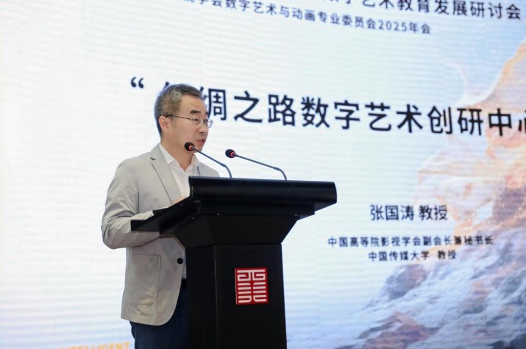 开幕式上,张国涛为“丝绸之路数字艺术创研中心”授牌,标志着丝路文化数字传承与创新实践迈入新阶段;黄心渊发布“动画与数字媒体专业系列教材”,为高校数字艺术教学提供优质资源支撑。