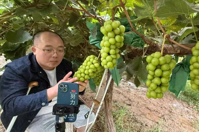 9月23日,淅沥小雨中,大荔县两宜镇的“阳光玫瑰葡萄园”里,单腿新农人张博正在直播。32岁的他因骨癌截肢,却凭借“田间课堂+车间直播”模式,让大荔冬枣、葡萄、苹果等特色农产品走进了天南海北的千家万户。2020年以来,他累计帮助200余户农民销售农产品超千万元。