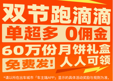 滴滴服务好司机,司机服务好乘客。双节假期出行需求高,为鼓励司机出车提供好服务,让师傅们优劳优得,共度佳节,滴滴将发放超4亿元司机补贴,推出“单超多,0佣金”奖励活动,为师傅们免费派发60万份月饼礼盒,送去节日温馨祝福。
