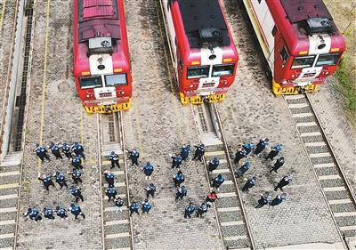 八月十九日,在肯尼亚内罗毕非洲之星铁路运营有限责任公司机务运转整备场,中肯两国铁路工作者在机车前站列并组成“3000”字样,以纪念蒙内铁路实现安全运营三千天。