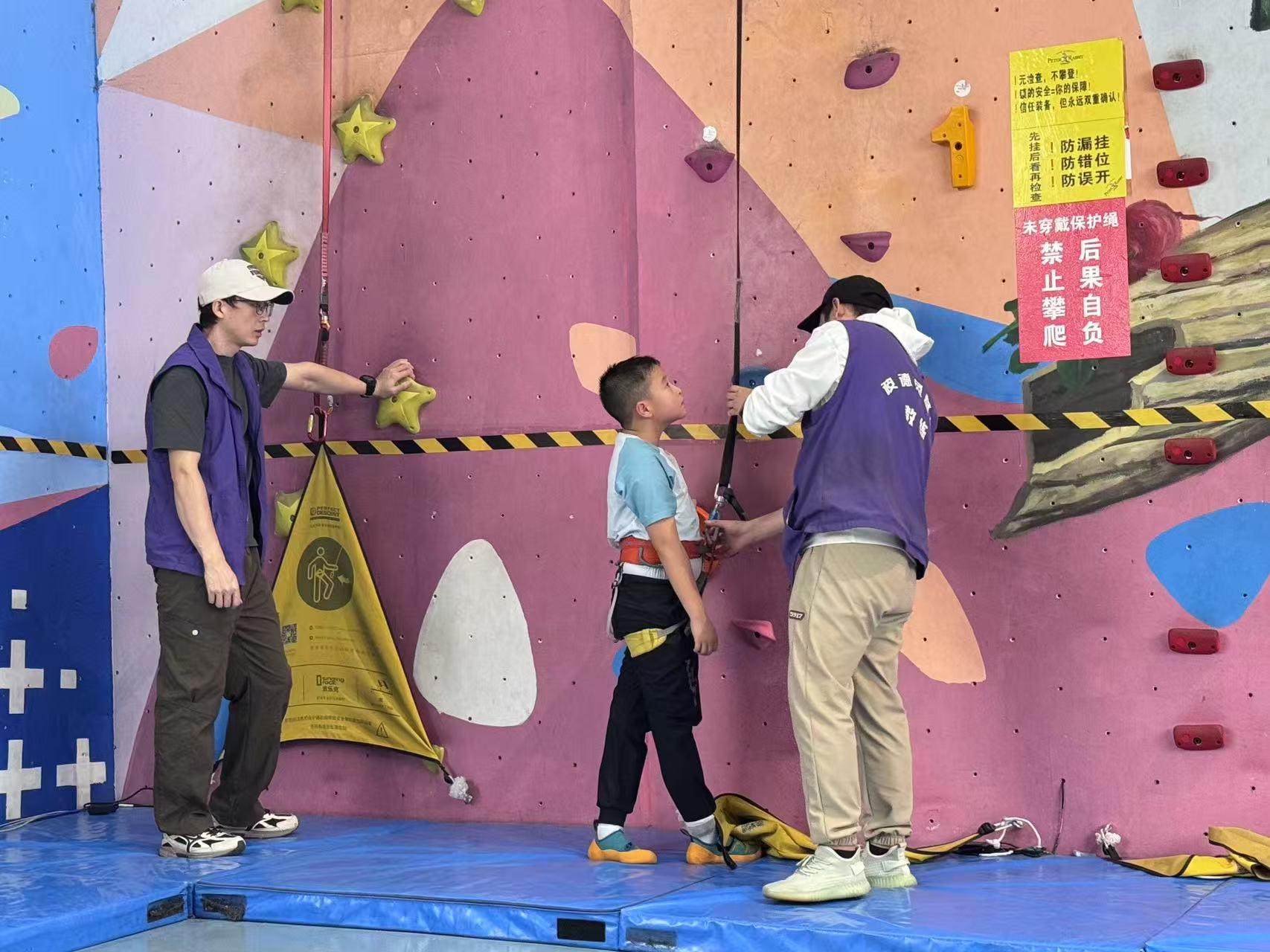 “脚踩稳岩点,手抓牢上方支撑,身体重心慢慢往前倾!”9月20日上午,彼德兔攀岩馆内回荡着教练温和而有力的指导声。岩壁之上,10岁的王梓涵眼神专注,小小的手掌紧紧扣住岩点,小腿用力蹬着岩壁,一步一步向上攀爬。汗水顺着他的额头滑落,浸湿了额前的碎发,可他丝毫没有退缩,咬紧牙关坚持向上,最终成功登顶。当他转身对着下方的父母比出“胜利”手势时,脸上绽放出灿烂的笑容。
