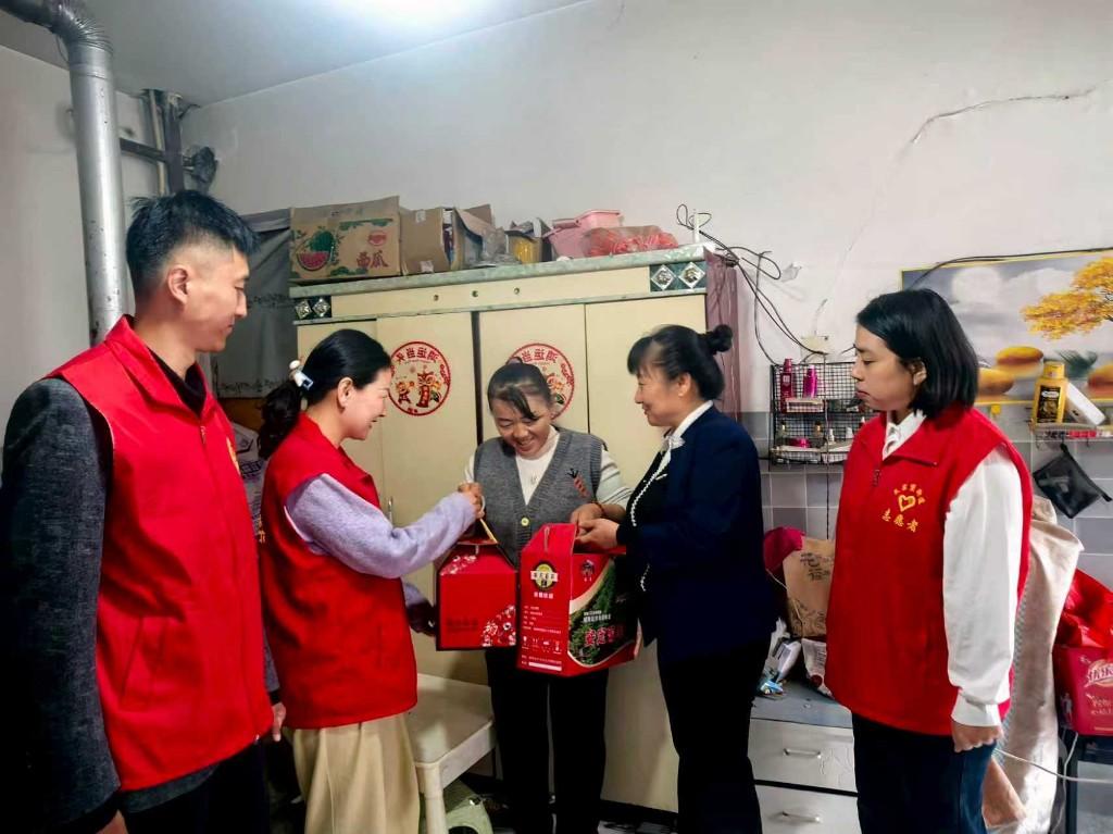 活动中,社区志愿者深入辖区,走访慰问困难老党员与群众家庭。每到一户,志愿者与居民耐心交谈,详细了解其身体状况与生活需求,认真倾听他们的心声,同时送上月饼、葡萄等慰问品,向他们致以节日祝福。