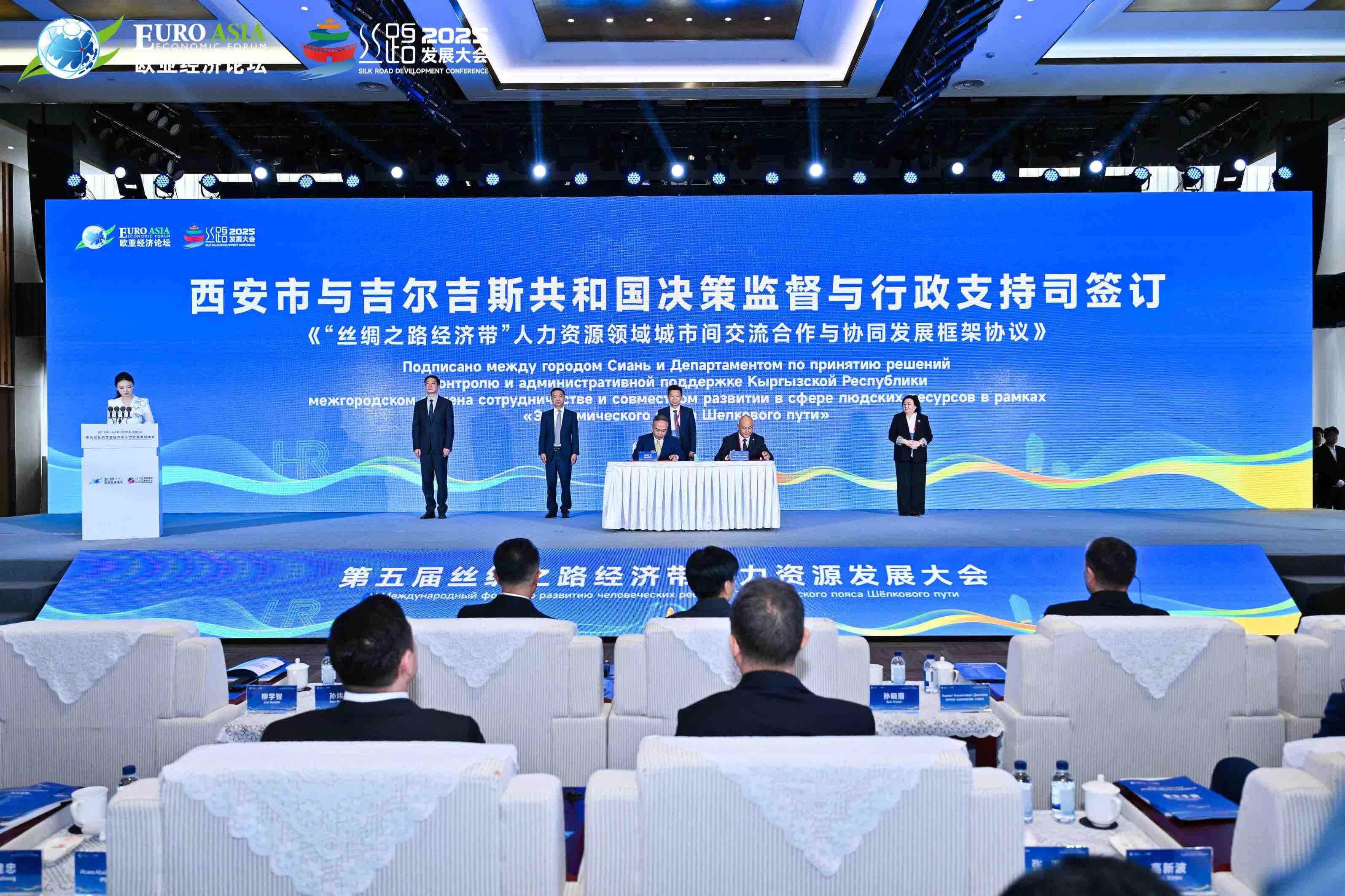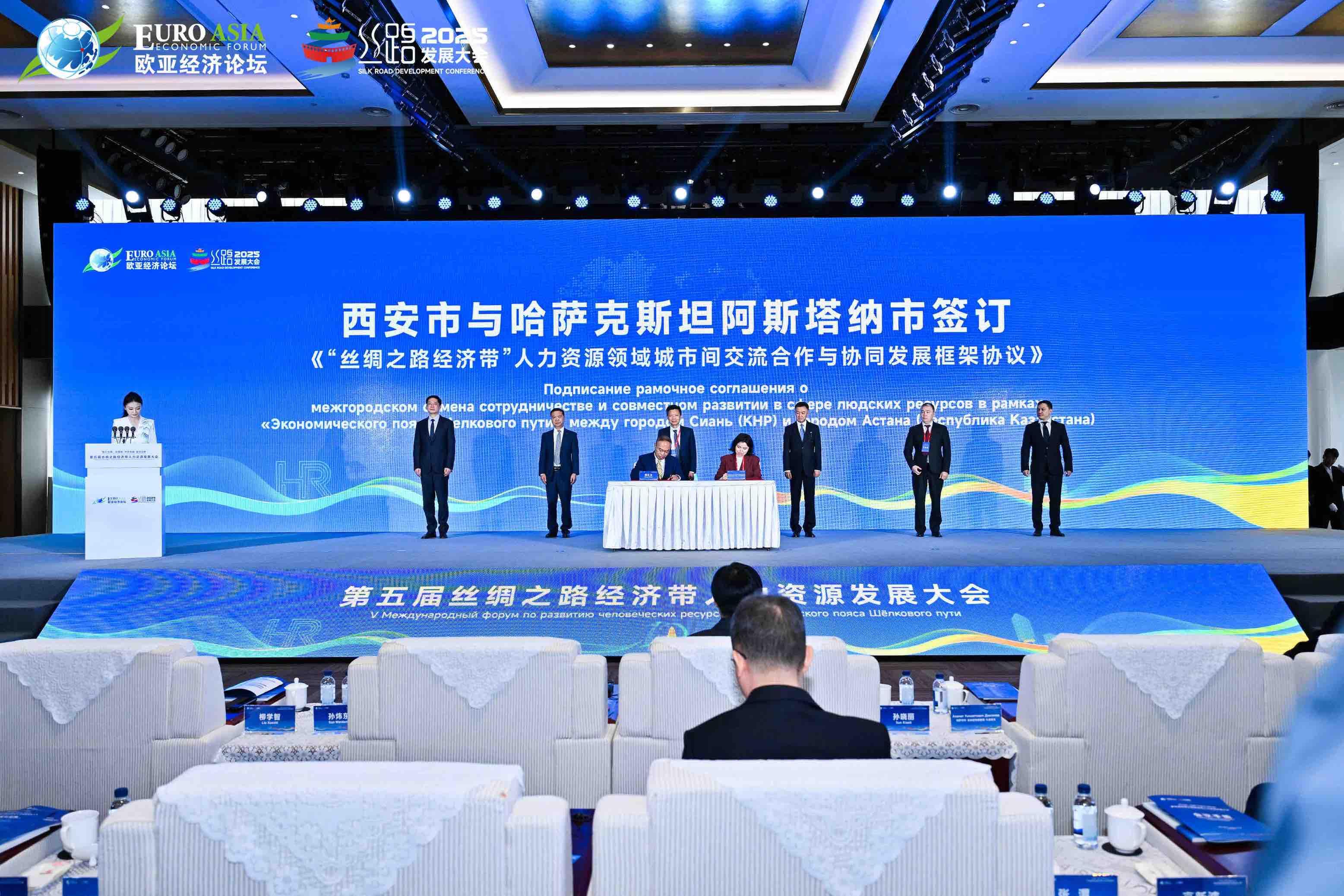 大会在促进国际合作与区域协同方面取得实质性进展。西安市与哈萨克斯坦、吉尔吉斯斯坦分别签订了《“丝绸之路经济带”人力资源领域城市间交流合作与协同发展框架协议》,旨在推动建立城市间人才政策协同、资格互认、信息共享的新机制。此外,上海市与西安市国家级人力资源服务出口基地签署了共建协议,欧亚资源集团(ERG)、西安外国语大学等多家单位也围绕国际人才培养、海外项目合作达成多项备忘录与实质性签约,展现了共建“一带一路”国家在人力资源领域广泛的合作前景。
