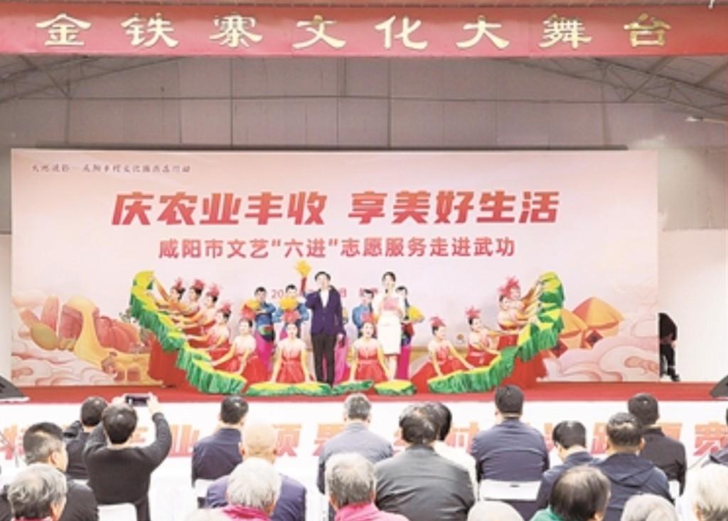 三秦都市报-三秦网讯(张洋 李二磊)9月23日,在第八个“中国农民丰收节”到来之际,咸阳市文艺“六进”志愿服务活动走进武功县小村镇,以“庆农业丰收 享美好生活”为主题,与当地群众一起载歌载舞,欢庆“中国农民丰收节”。
