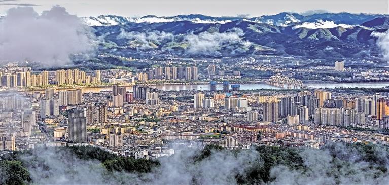 9月19日,云雾笼罩下的安康市,呈现出仙境般的美景。 本报通讯员 皮勇维摄