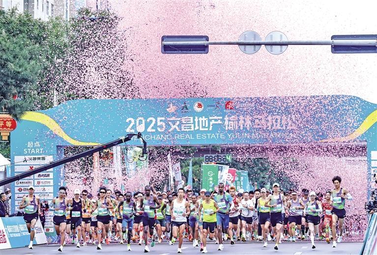 本报讯 (记者 苏欣雨)9月21日,2025文昌地产榆林马拉松在榆林市榆阳区喜洋洋时代广场鸣枪开跑,来自国内外的2万名选手参赛。