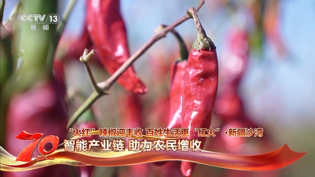 这几天迎来丰收的还有“火红”的辣椒,新疆沙湾是有名的“辣椒之乡”,全国每十个调味辣椒就有一个产自这里。
