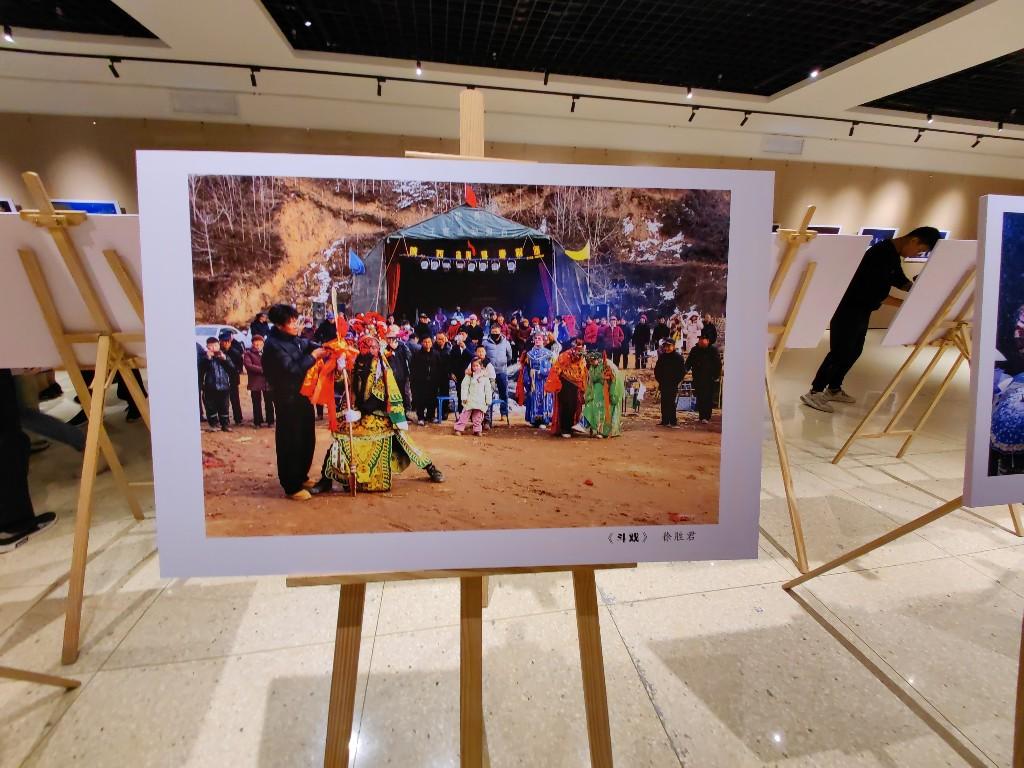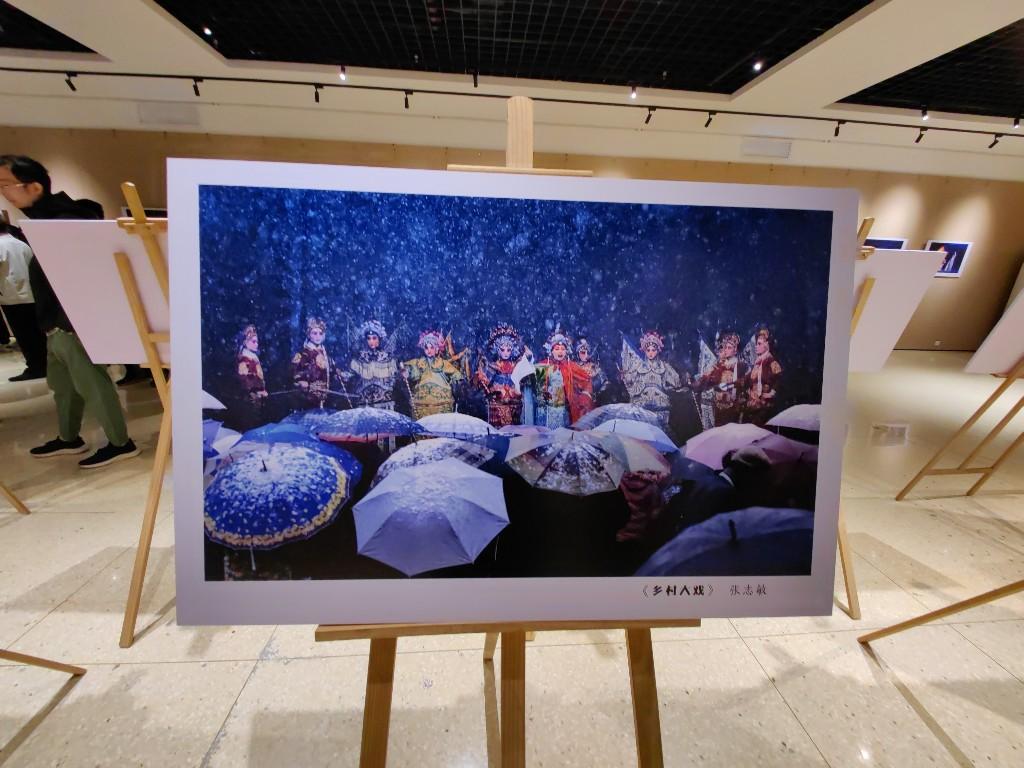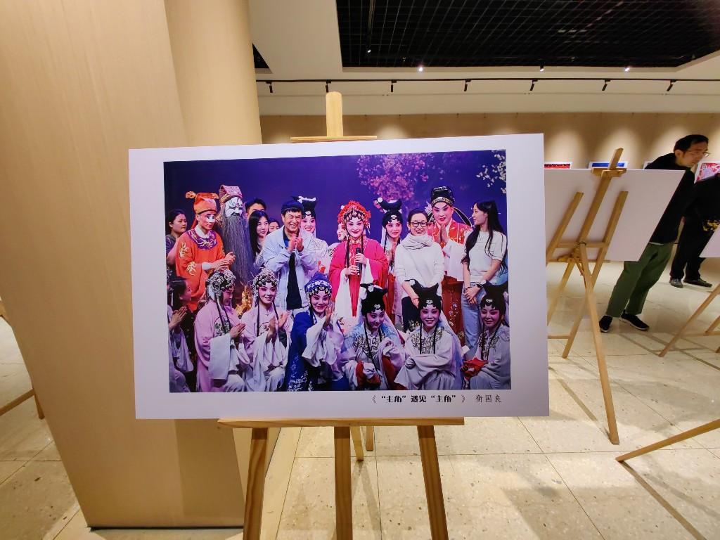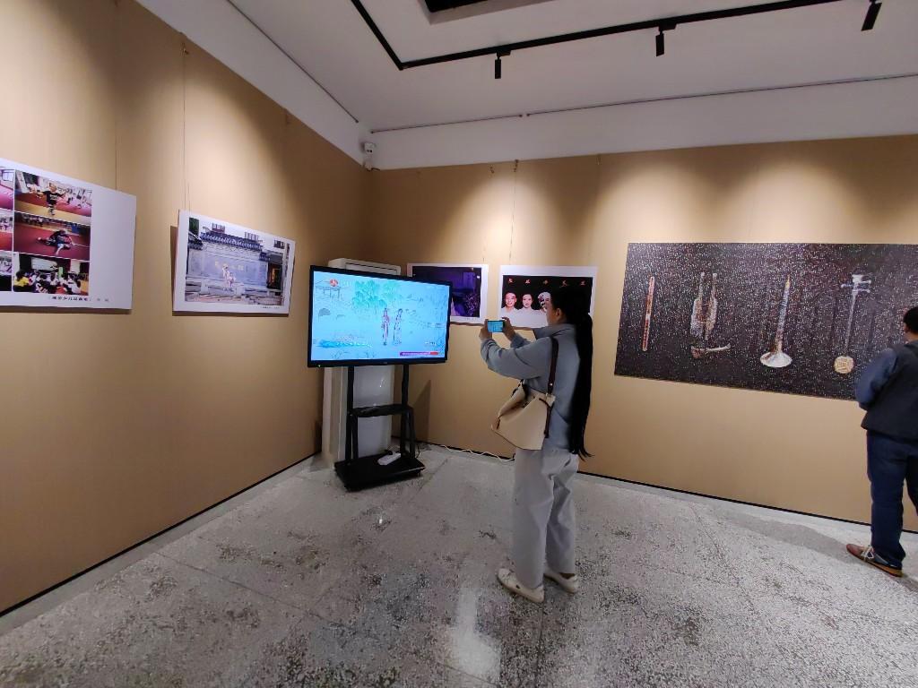 记者在现场看到,此次展览以“影像”为纽带,让黄土高原的豪迈与江南水乡的温婉在镜头下相遇。展厅里,通过两地摄影家的精湛作品,镜头不仅捕捉了秦腔《三滴血》《铡美案》等经典剧目和昆曲《牡丹亭》《西厢记》等名篇在舞台上的华彩瞬间,更深入幕后、走入民间,记录了艺术家们台下的艰辛传承、乡村戏台周边的火热生活场景,以及两种古老艺术如何深深植根于百姓日常,焕发出历久弥新的生命力。一幅幅震撼人心或温情脉脉的影像,构建起一个无声却极具张力的对话空间,让观者得以直观感受黄土的苍茫豪迈与水乡的温婉灵秀如何在艺术中交融互鉴。不少观众拿着手机拍摄影像作品,有的还在讨论秦腔与昆曲的不同风格。
