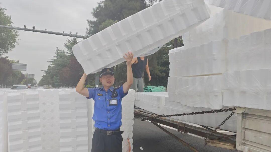 浐灞国际港城管执法局执法人员巡查至港兴路中段时,发现一辆行驶中的货车因颠簸,导致满载的泡沫洒落路面。白色碎片不仅影响市容环境,更给过往车辆通行带来安全隐患。执法人员迅速分工行动:从执法车上取出反光三脚架,在事故现场后方规范设置,警示后方车辆避让;同时化身“临时交警”,在车流中有序指挥,引导车辆安全通行。保障交通安全后,执法人员又与货车司机一同清理散落的泡沫碎片,并提醒司机注意操作安全。仅半小时后,所有泡沫被重新装车,路面恢复整洁畅通,司机紧握执法人员的手连声道谢。