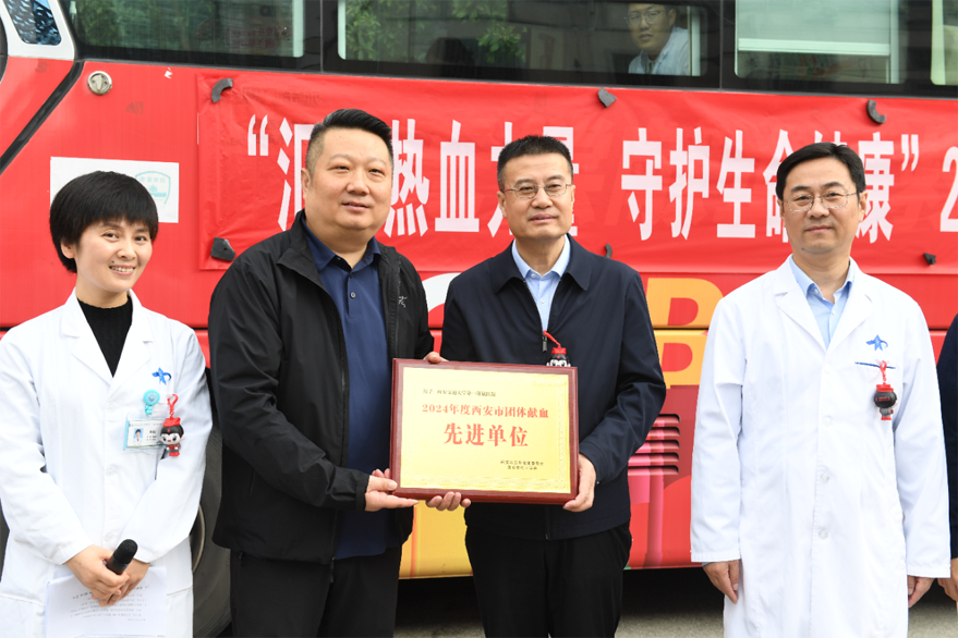 随后,胸外科团支部书记张言鹏代表青年职工表态,承诺将以实际行动践行“救死扶伤”的使命,带动更多人加入无偿献血行列。陕西省血液中心田永刚副站长对一附院医务人员的奉献精神给予高度评价,并向医院授予“2024年度西安市团体献血先进单位”荣誉奖牌。仪式最后,各位领导为献血量达3000毫升以上的职工代表颁发感谢状,表彰他们的突出贡献。