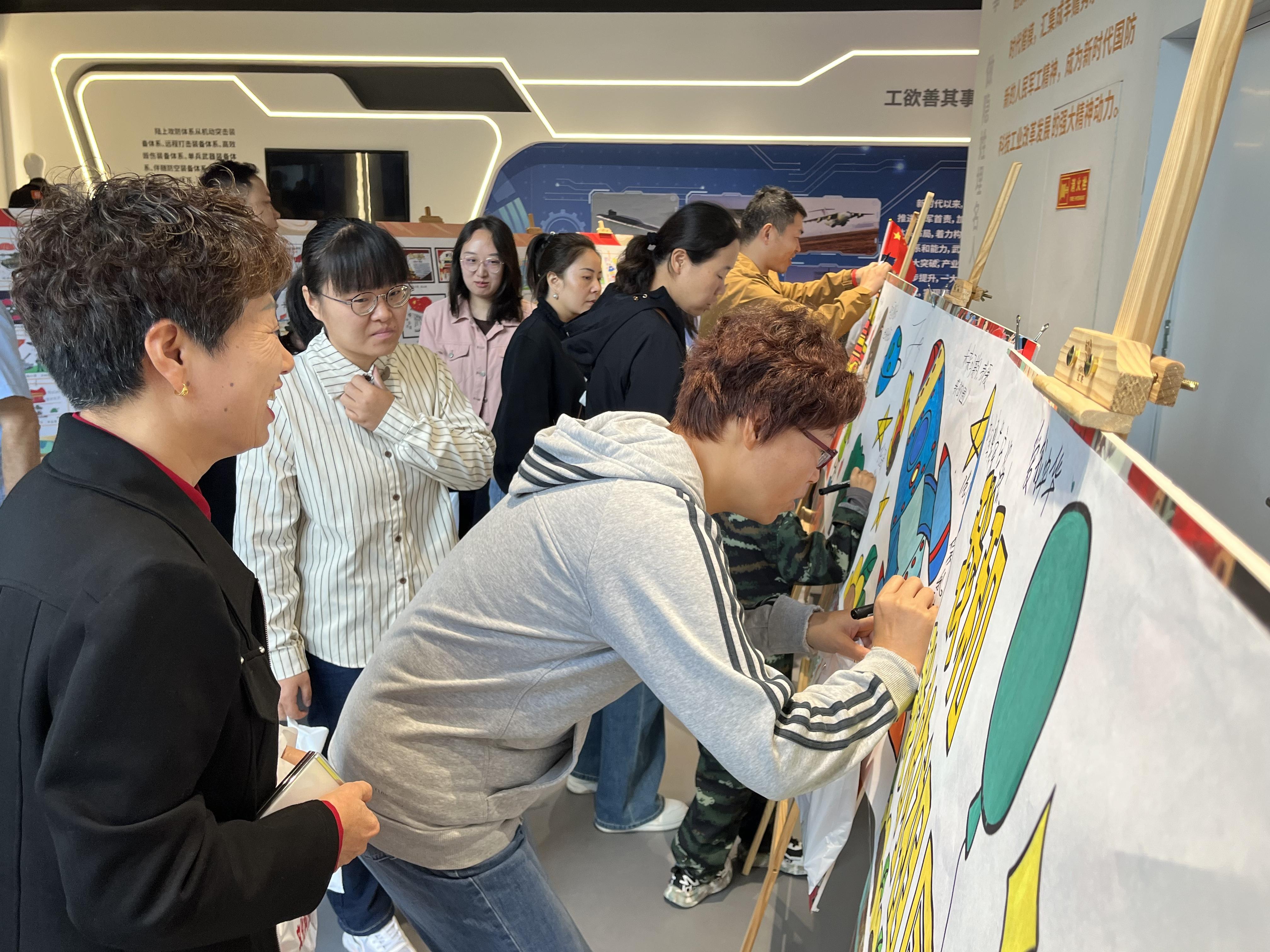 活动最后,与会嘉宾和观众步入展馆开启沉浸式参观体验。大家近距离观摩了先进的武器装备,欣赏了由临潼区火车站小学和铁路小学同学们创作的“童心绘国防”绘画展,并在“爱国主题长卷涂鸦”上签名留言,亲手写下对祖国的美好祝福,将活动的氛围推向高潮。